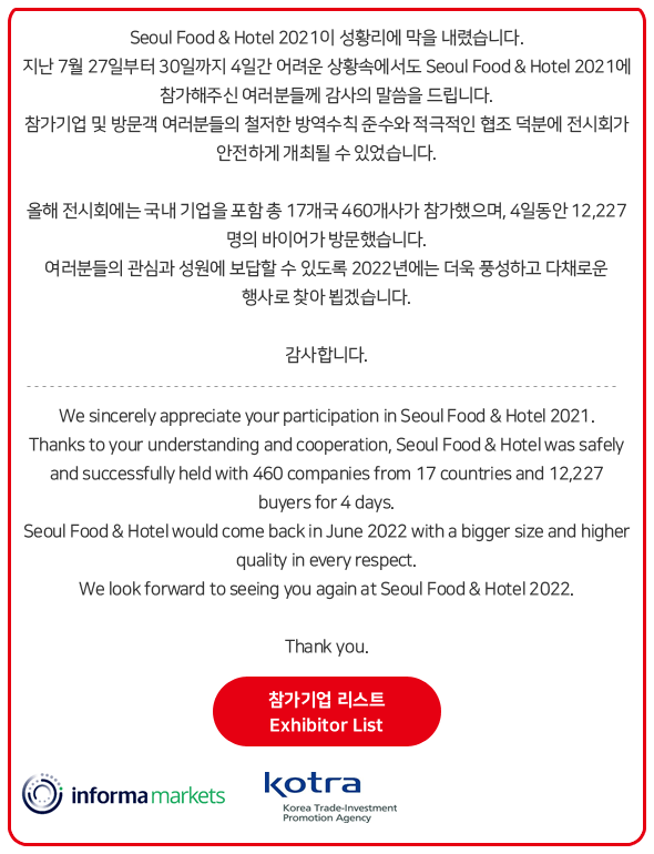 We had so many highlights at this year’s event. We’ve met numerous great professionals from Korea’s food industry and receiving tremendous interest in our products.